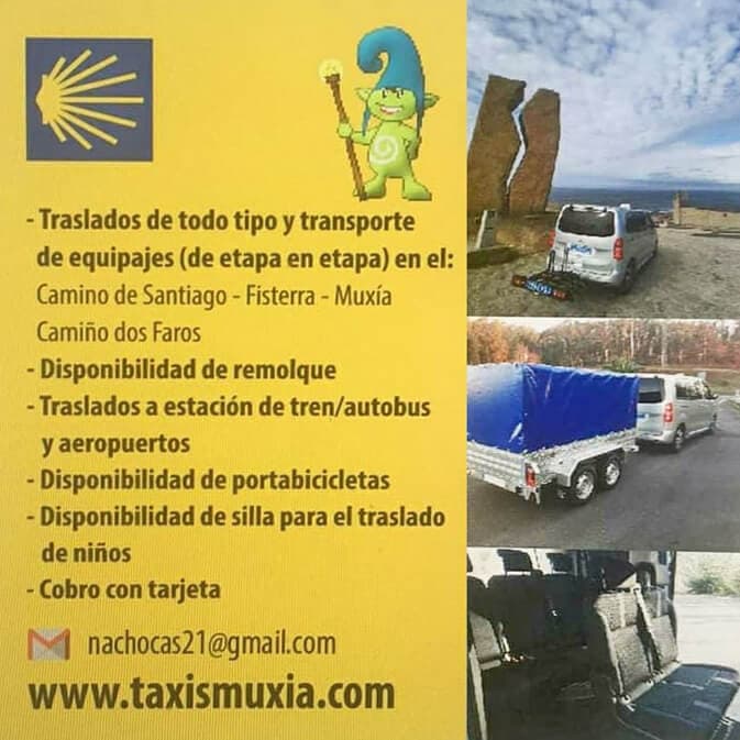 Entre los servicios que realiza destacan el transporte de equipajes, el servicio de taxi en el Camino de Santiago - Fisterra - Muxía, taxi para el Camino de los Faros... Además, a este se suma el servicio de taxi 24 h, con el que el transporte está garantizado también los 365 días del año.